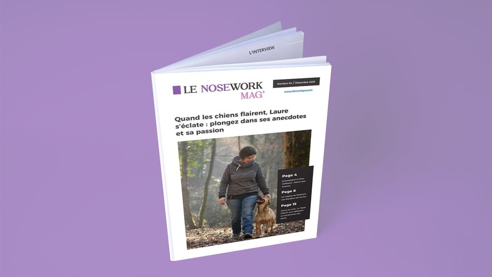 Ce numéro vous invite aussi à remonter aux origines du Nosework, afin de mieux comprendre les fondements de cette discipline passionnante. Pour ce 4ᵉ numéro du Nosework Mag’, Laure Hanouna — fondatrice de Flair en Ligne et rédactrice en cheffe du magazine — se prête au jeu de l’interview, menée par François, webmaster du projet. Une rencontre sans détour, ponctuée d’anecdotes et de quelques surprises.